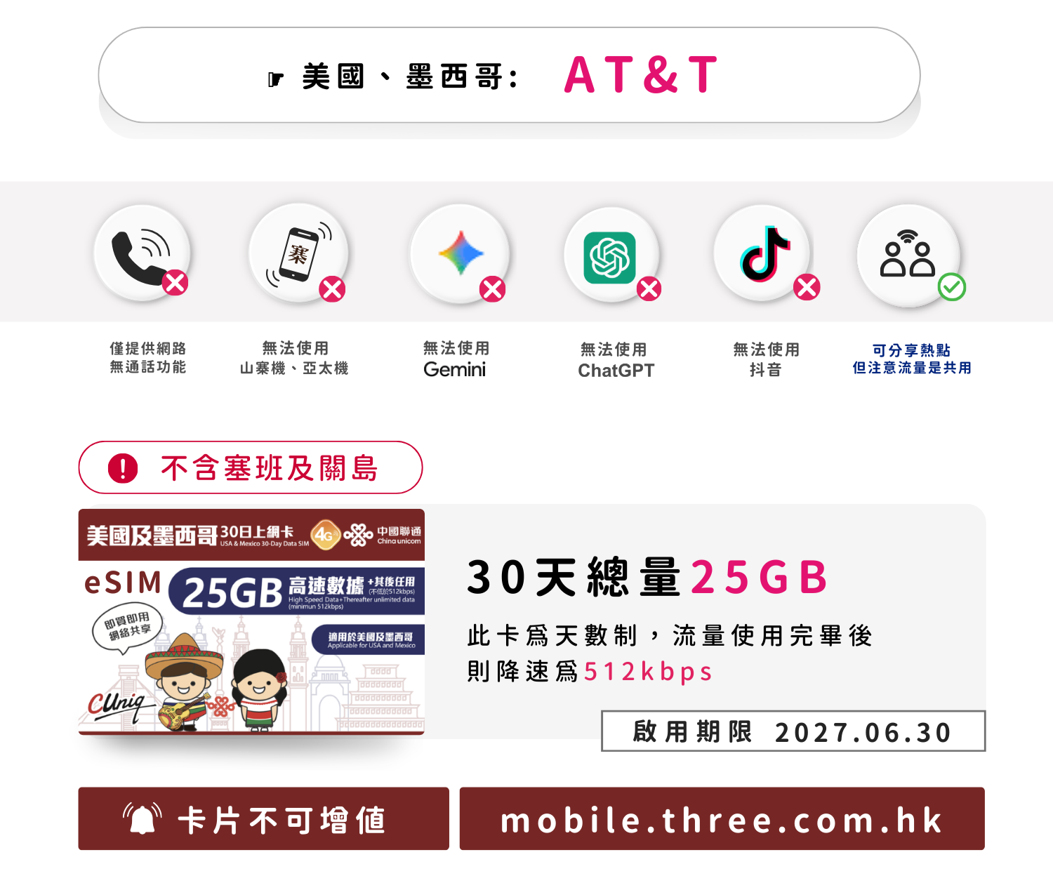 eSIM_聯通美墨上網卡30天 25GB