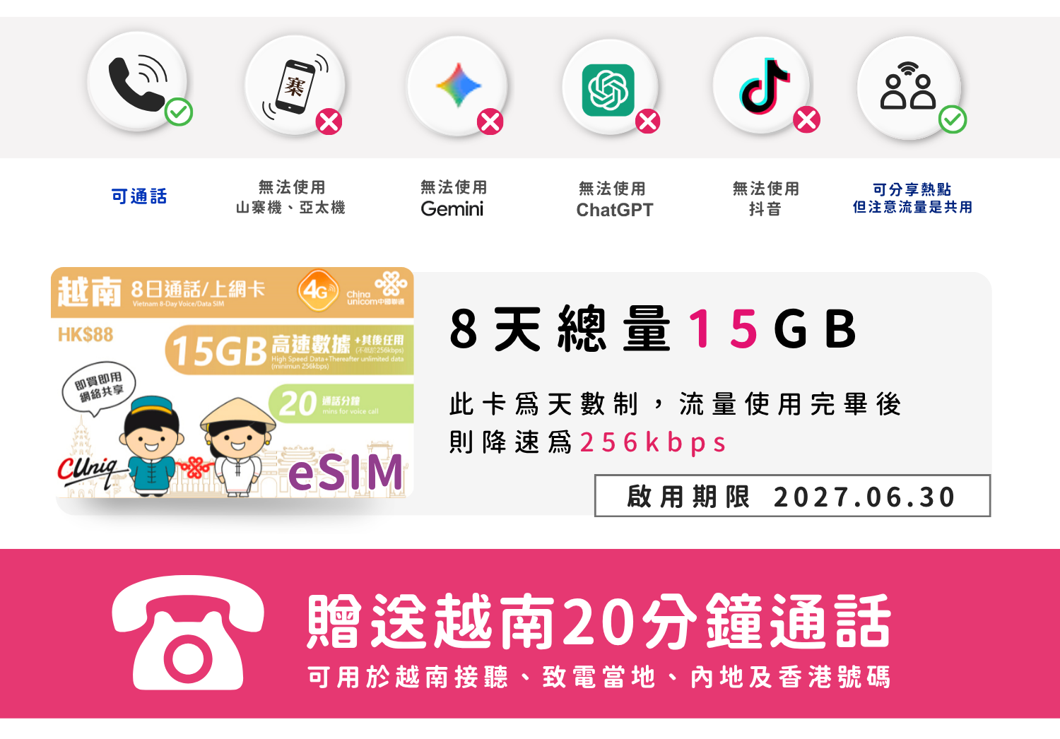 eSIM_越南上網卡8天15GB (可通話)