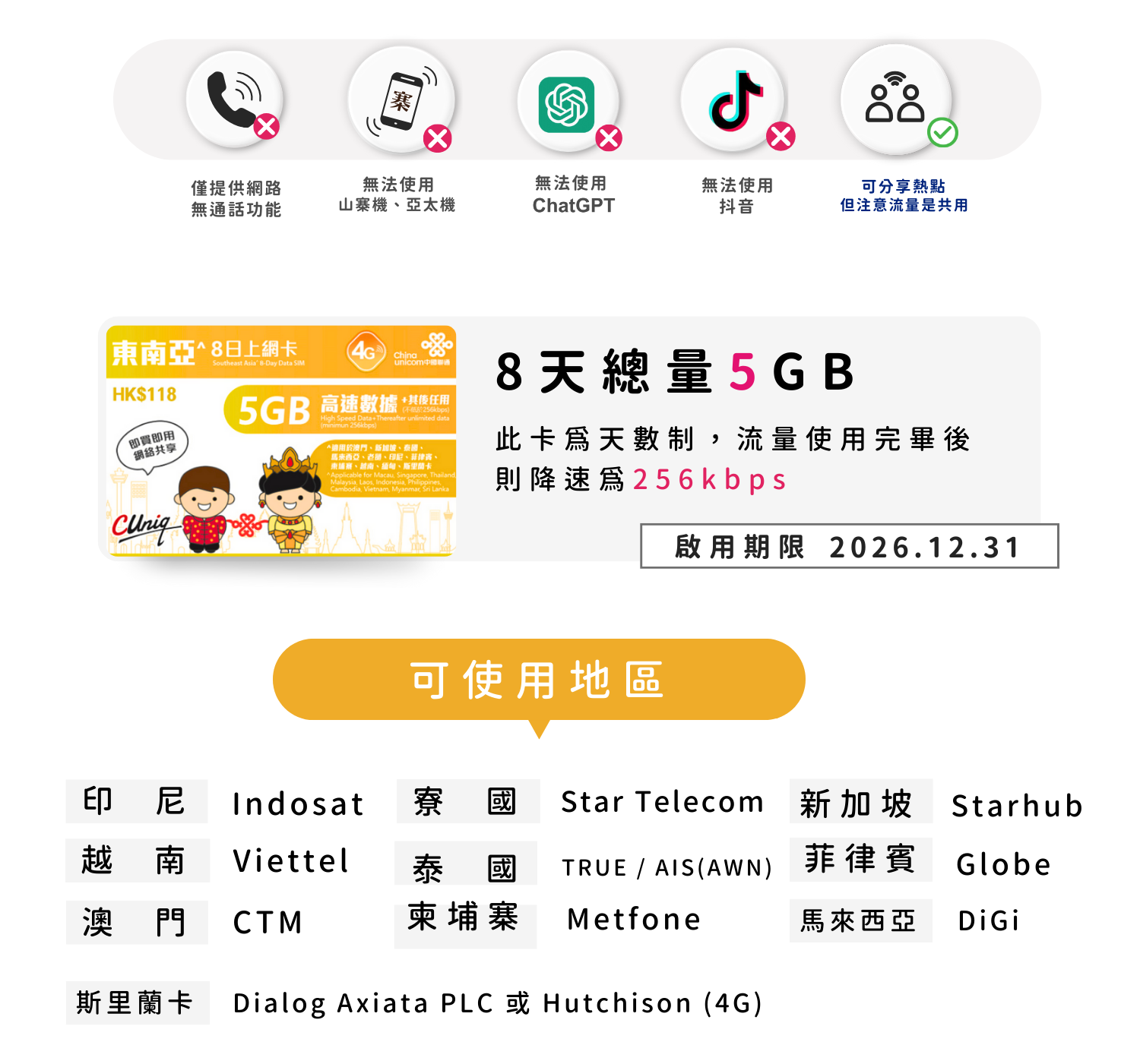 聯通東南亞上網卡8天5GB