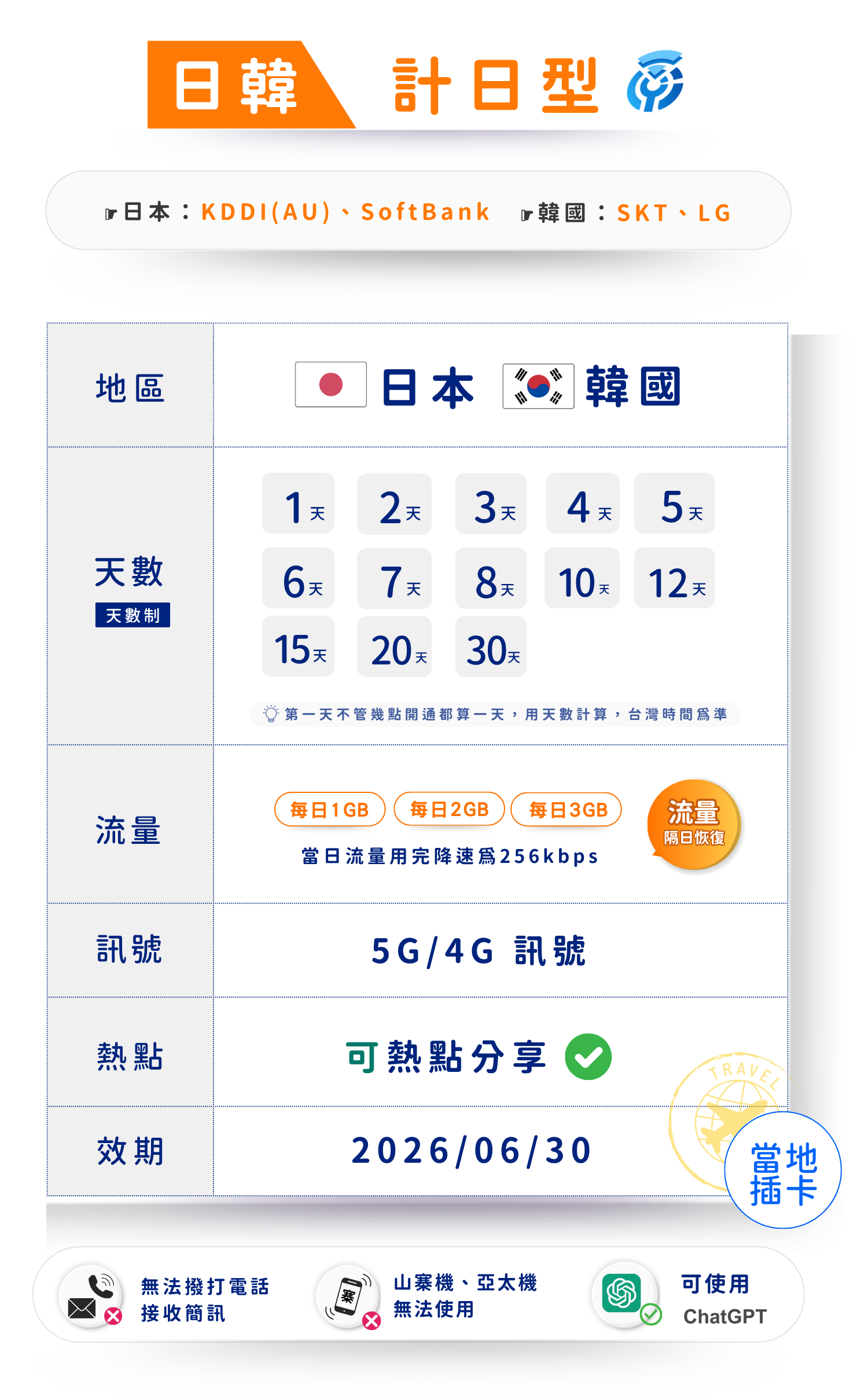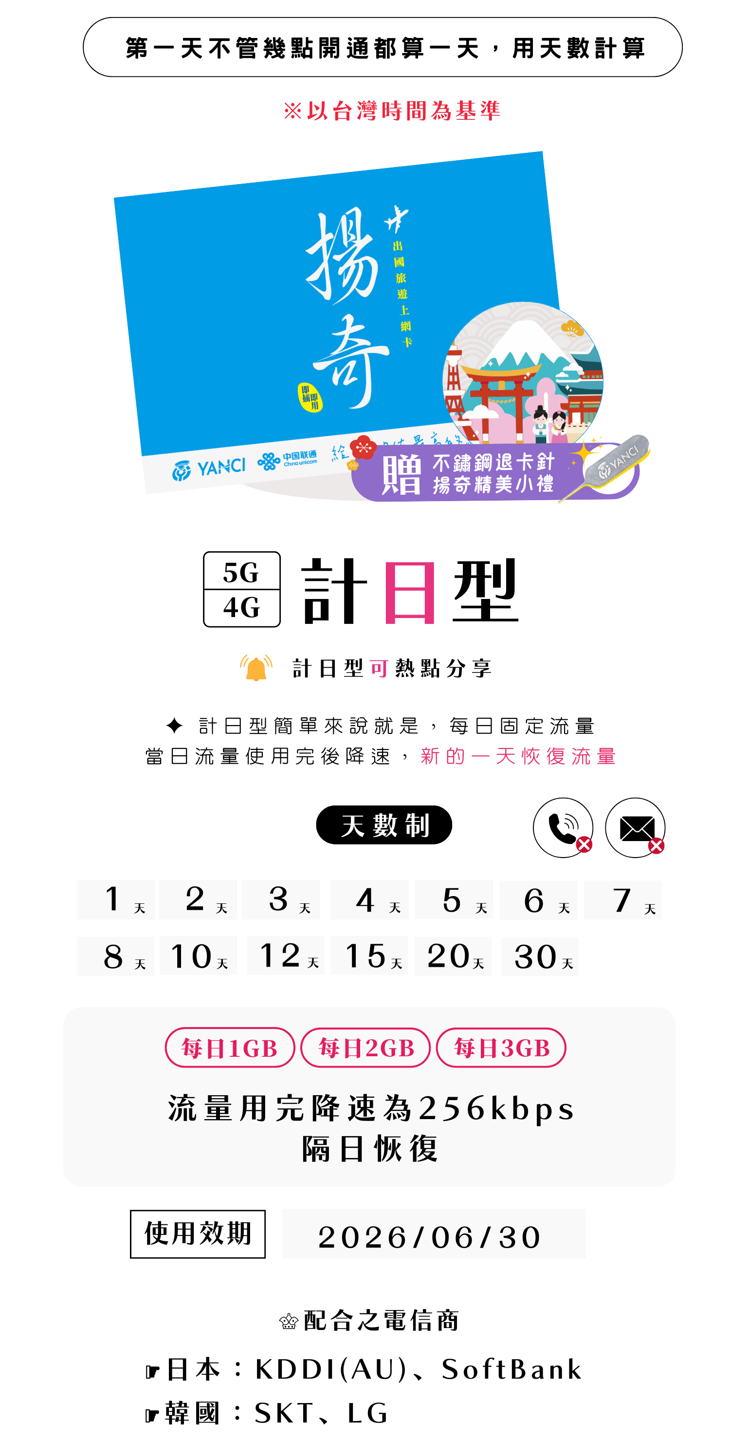 揚奇日韓多日(計日型)上網卡