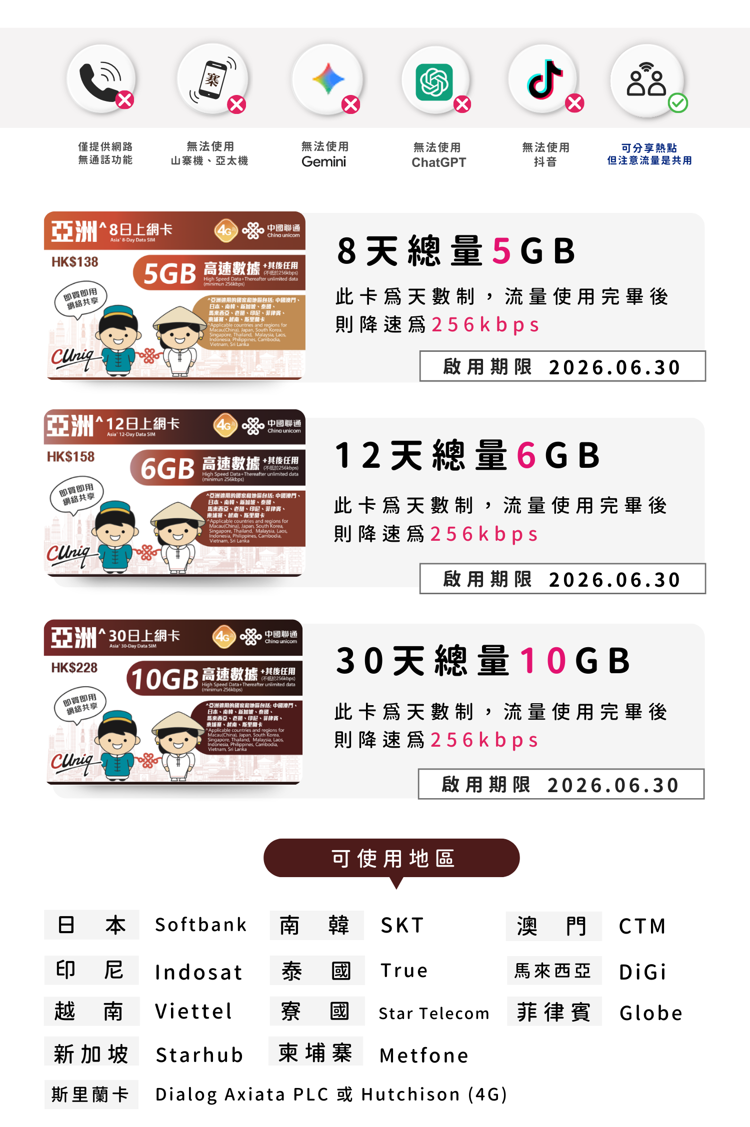 聯通亞洲多日上網卡