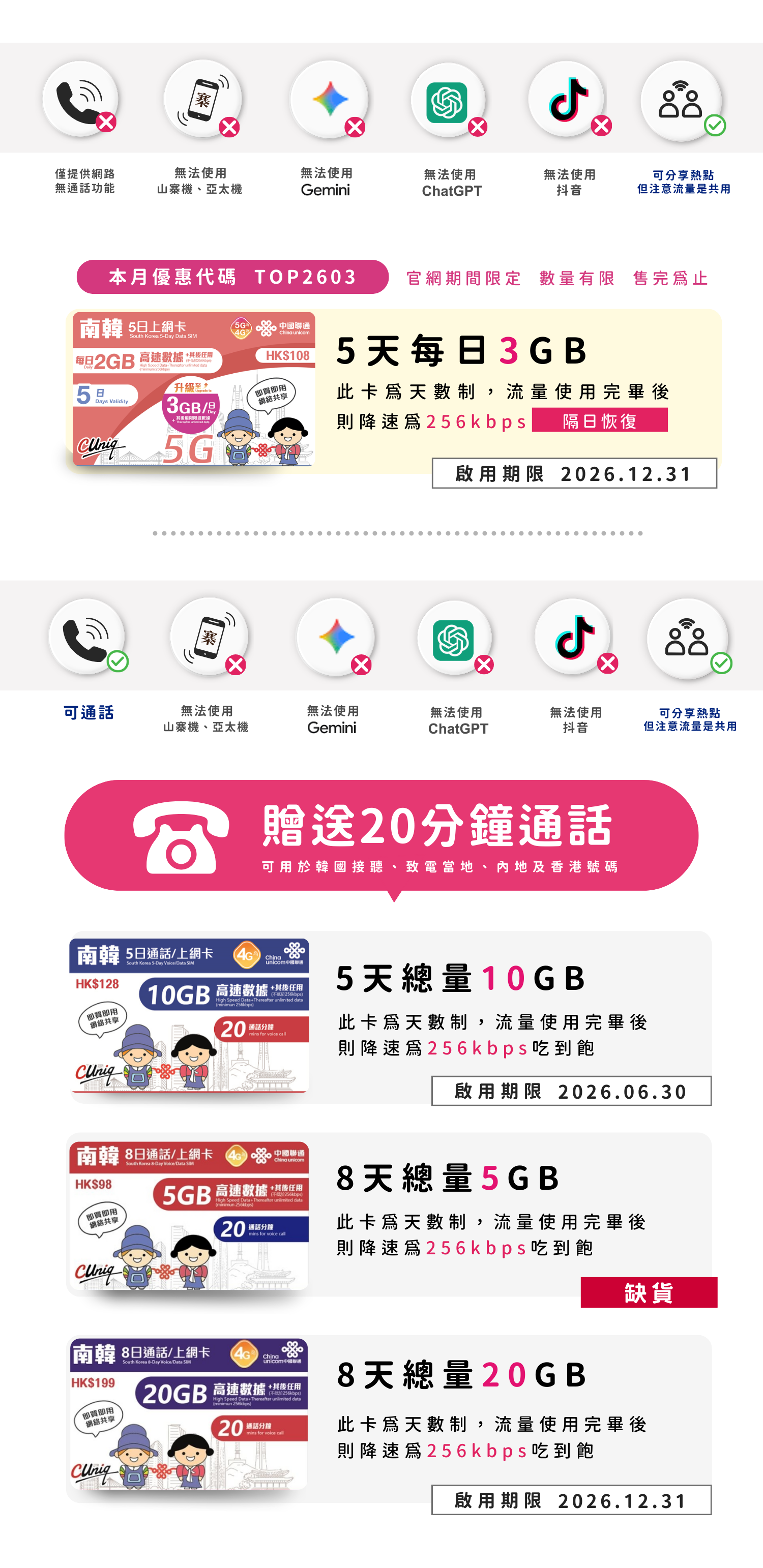 聯通南韓多日上網卡