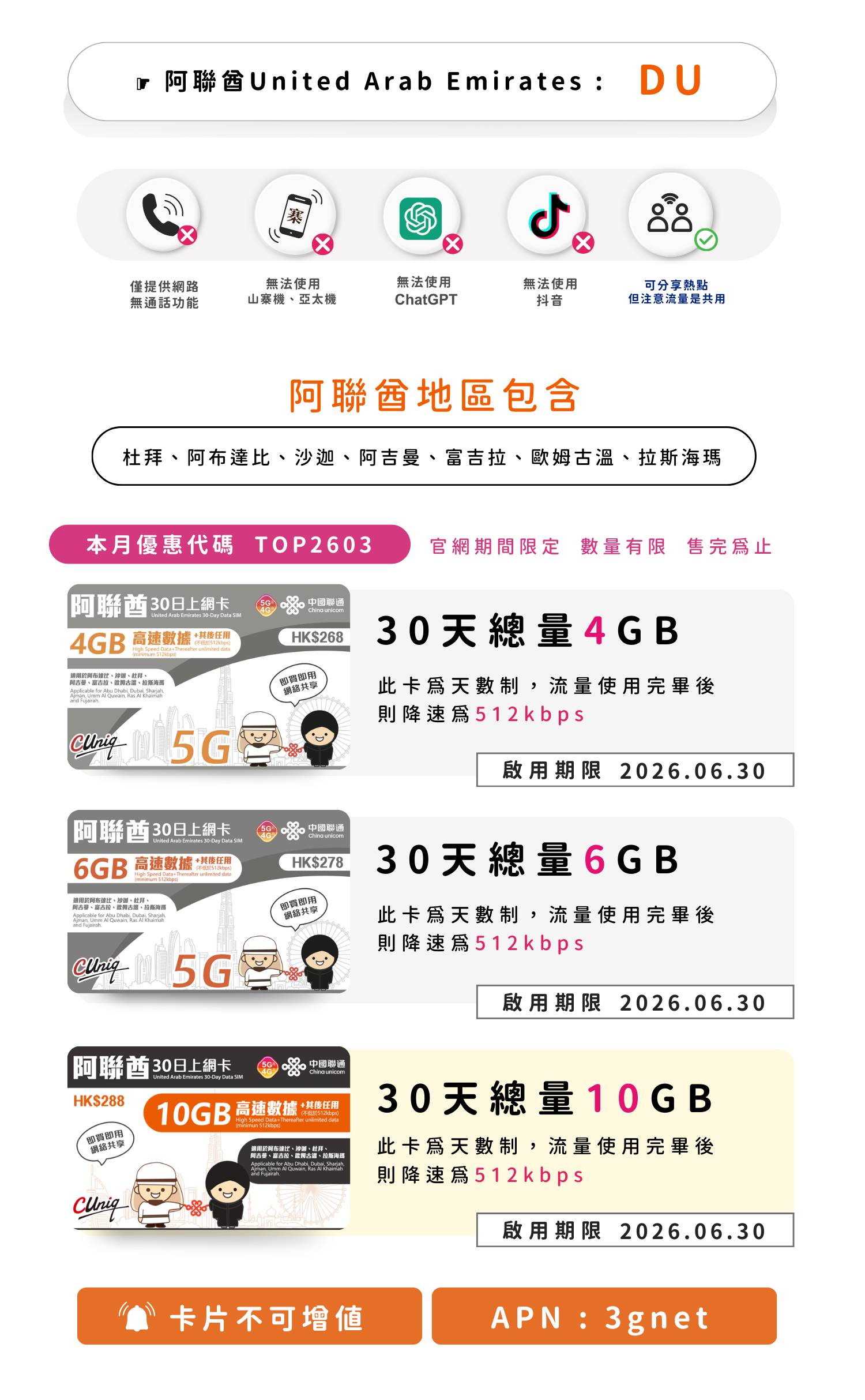 聯通阿聯酋上網卡