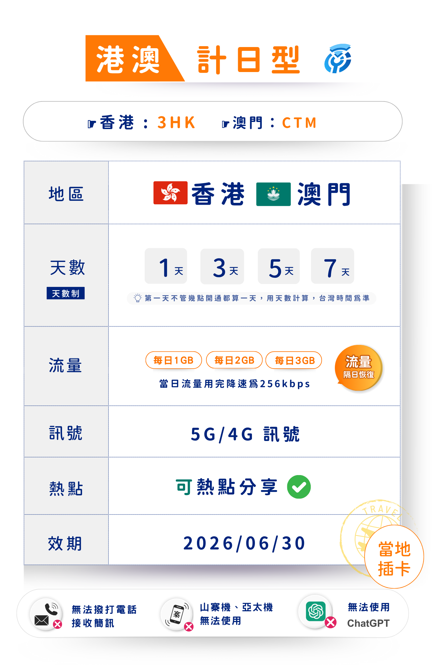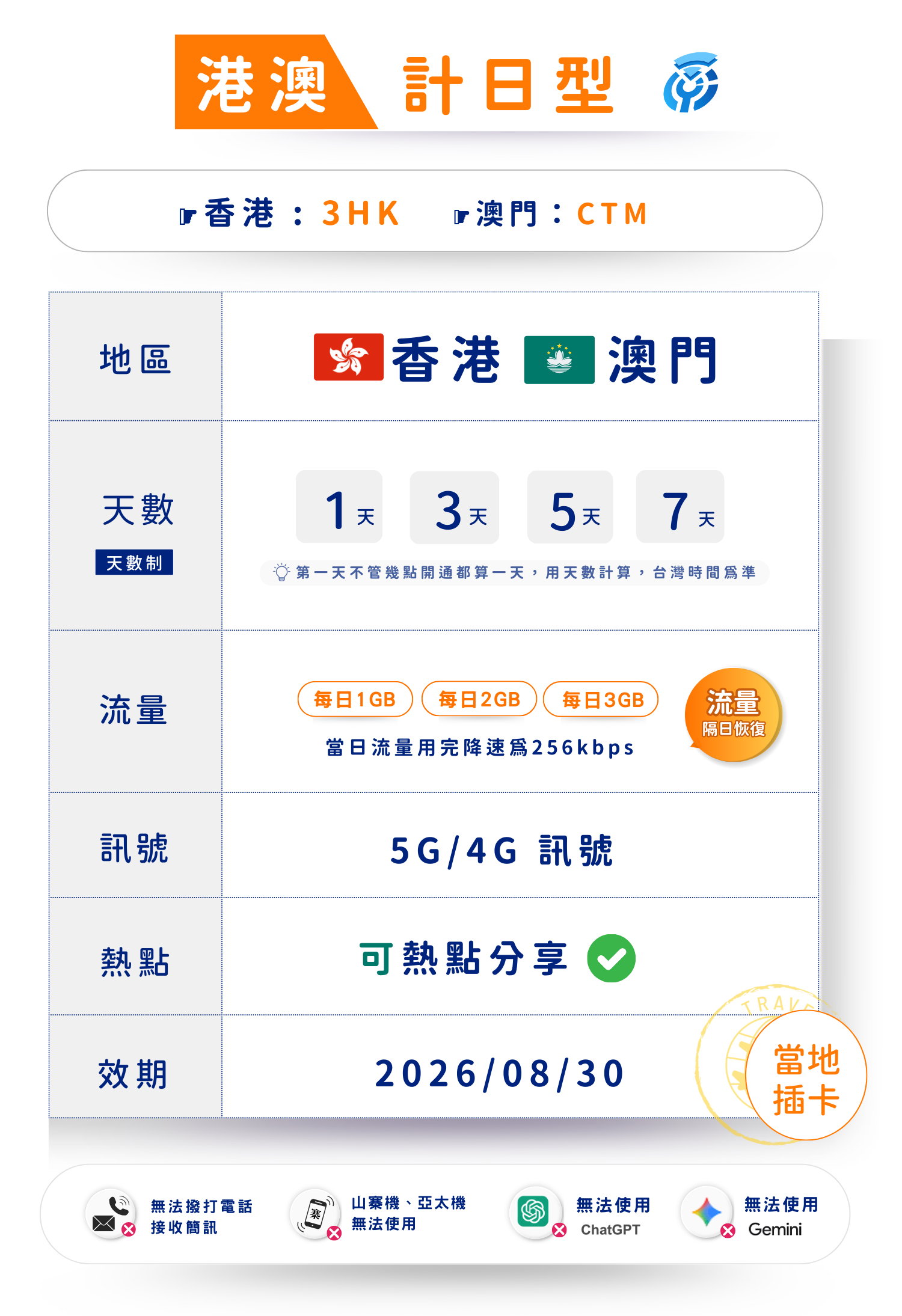 揚奇港澳多日(計日型)上網卡