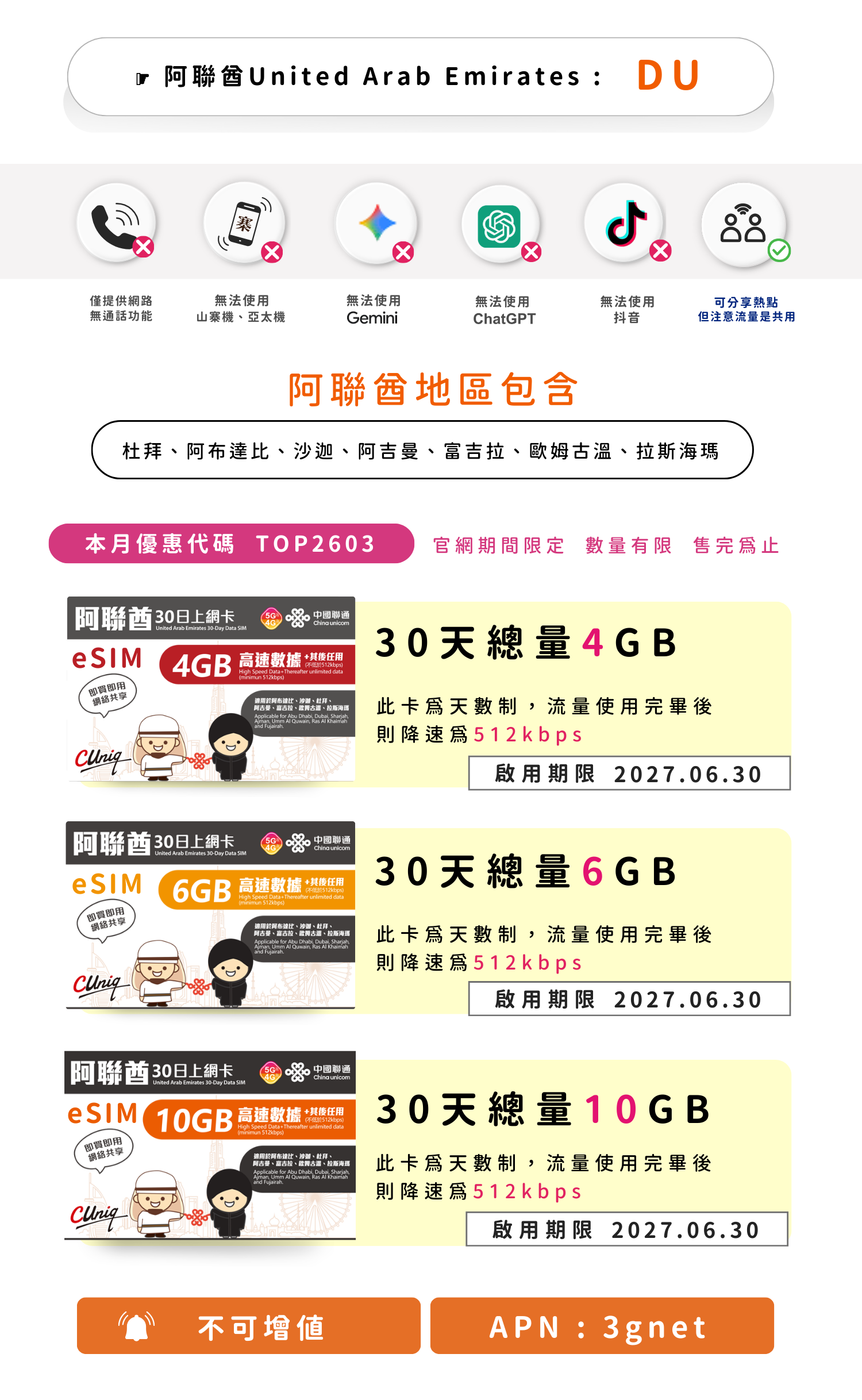 eSIM_聯通阿聯酋上網卡