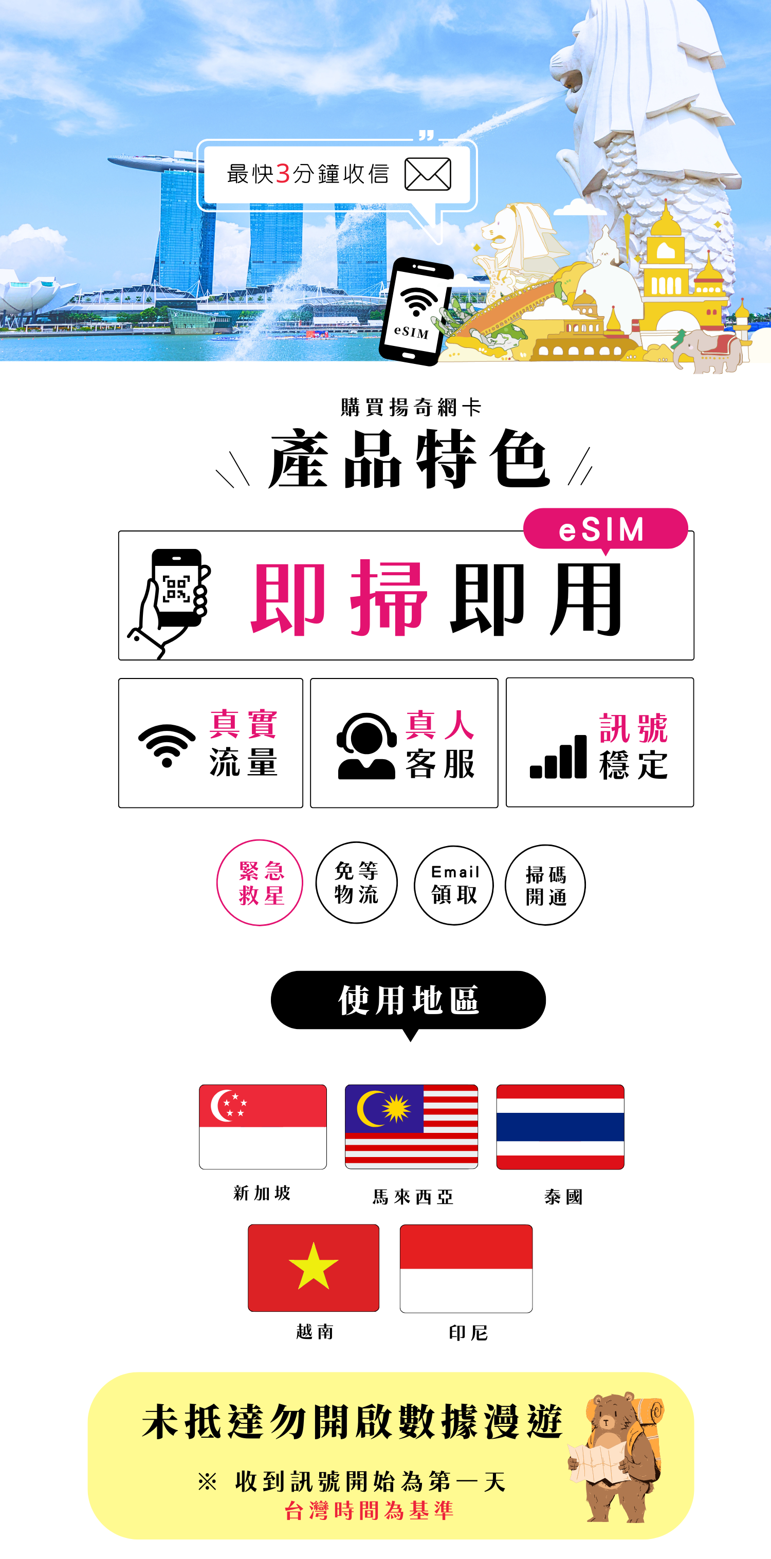 eSIM_揚奇新馬泰越印多日(計日型)上網卡
