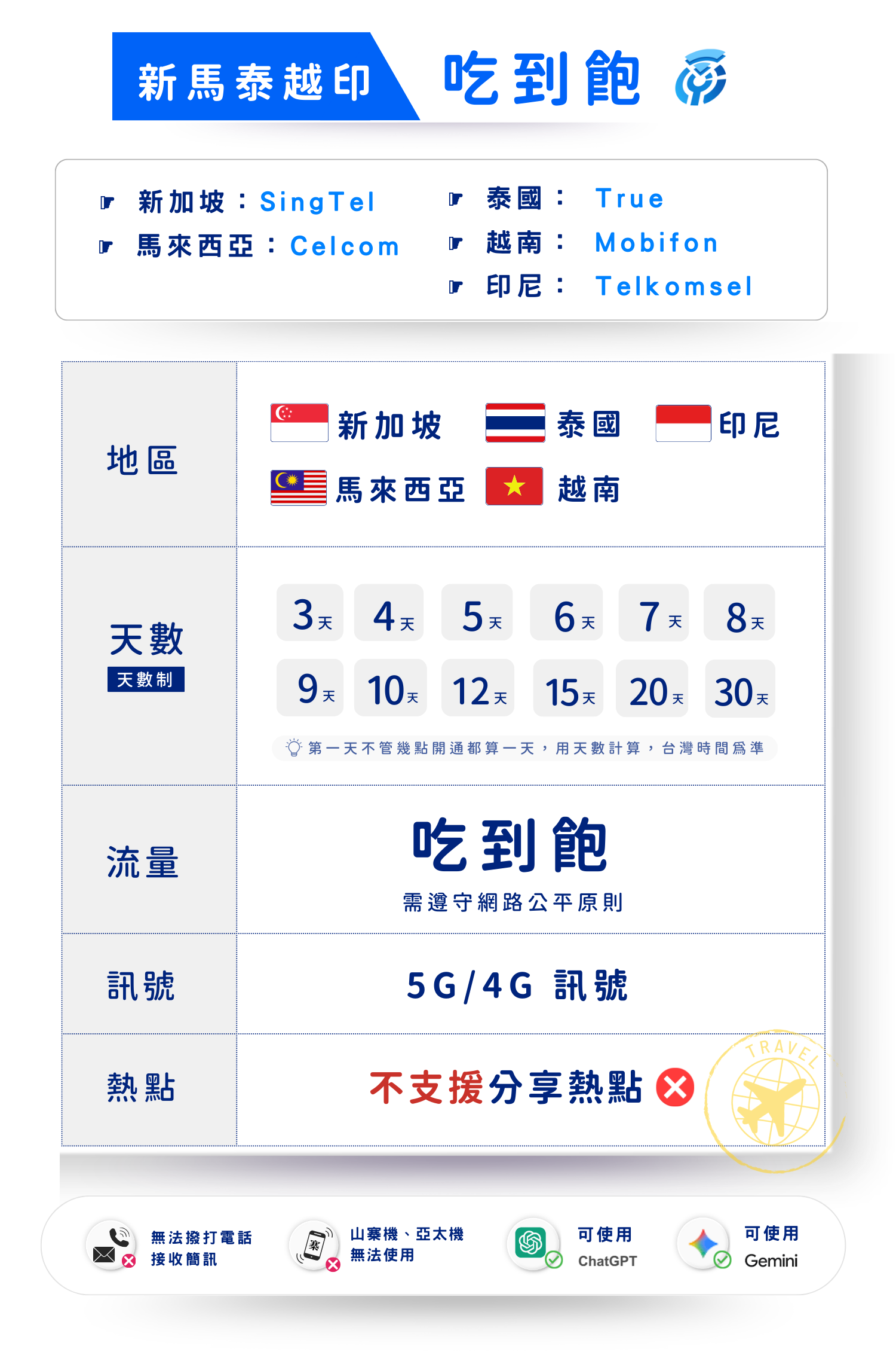 eSIM_揚奇新馬泰越印多日(吃到飽)上網卡
