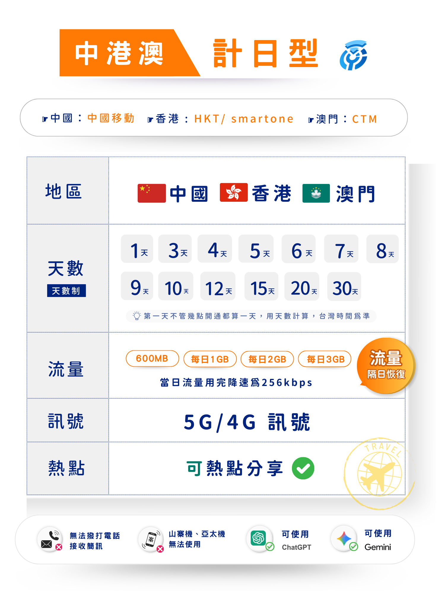 eSIM_揚奇中移動港澳(計日型)上網卡
