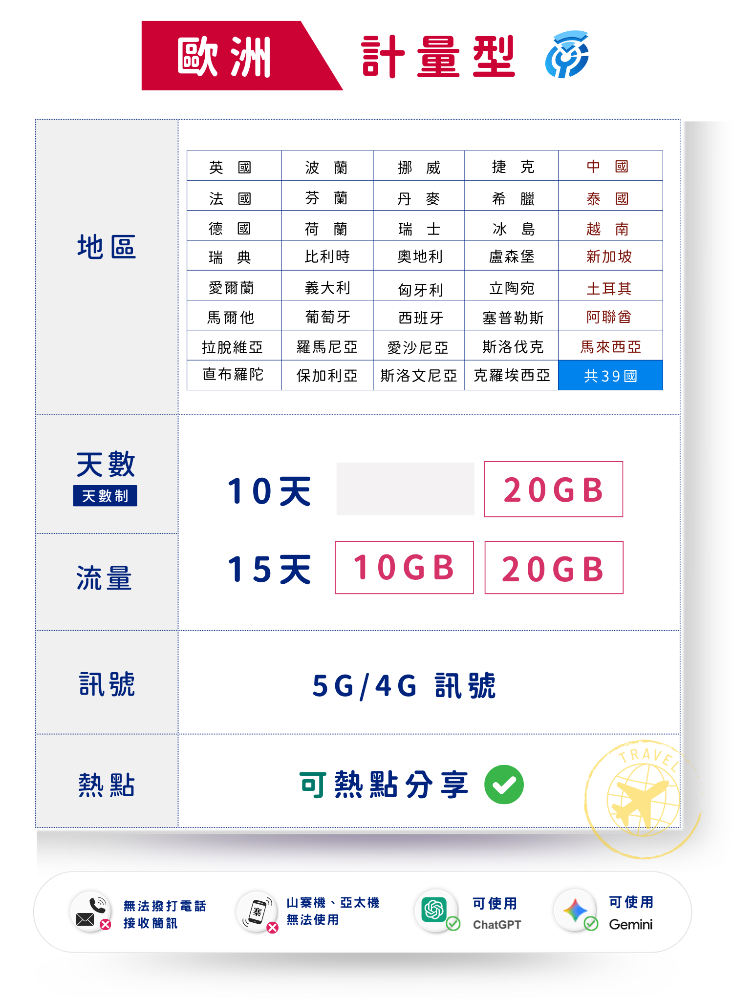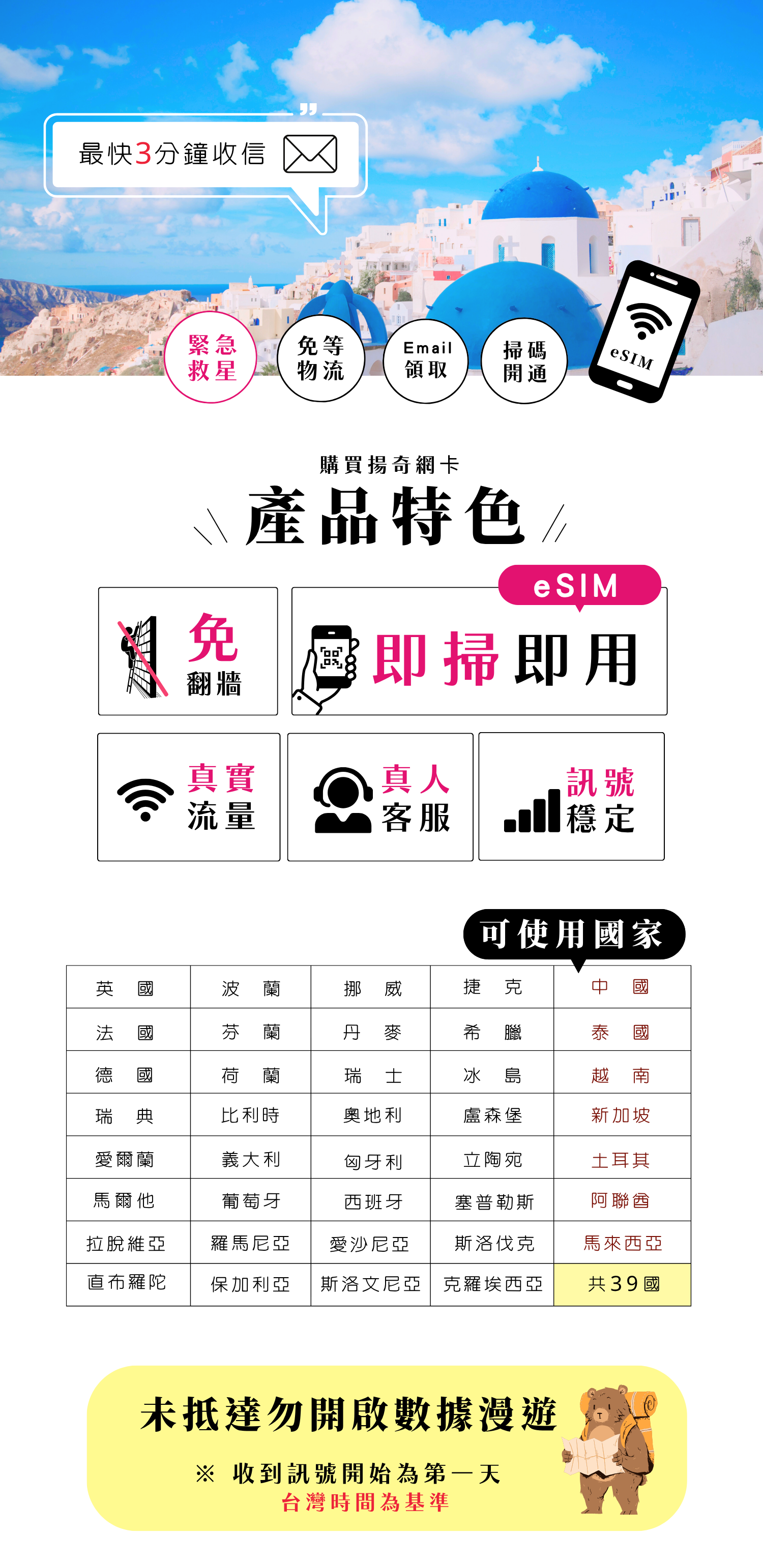 eSIM_揚奇歐洲多日(計量型)上網卡