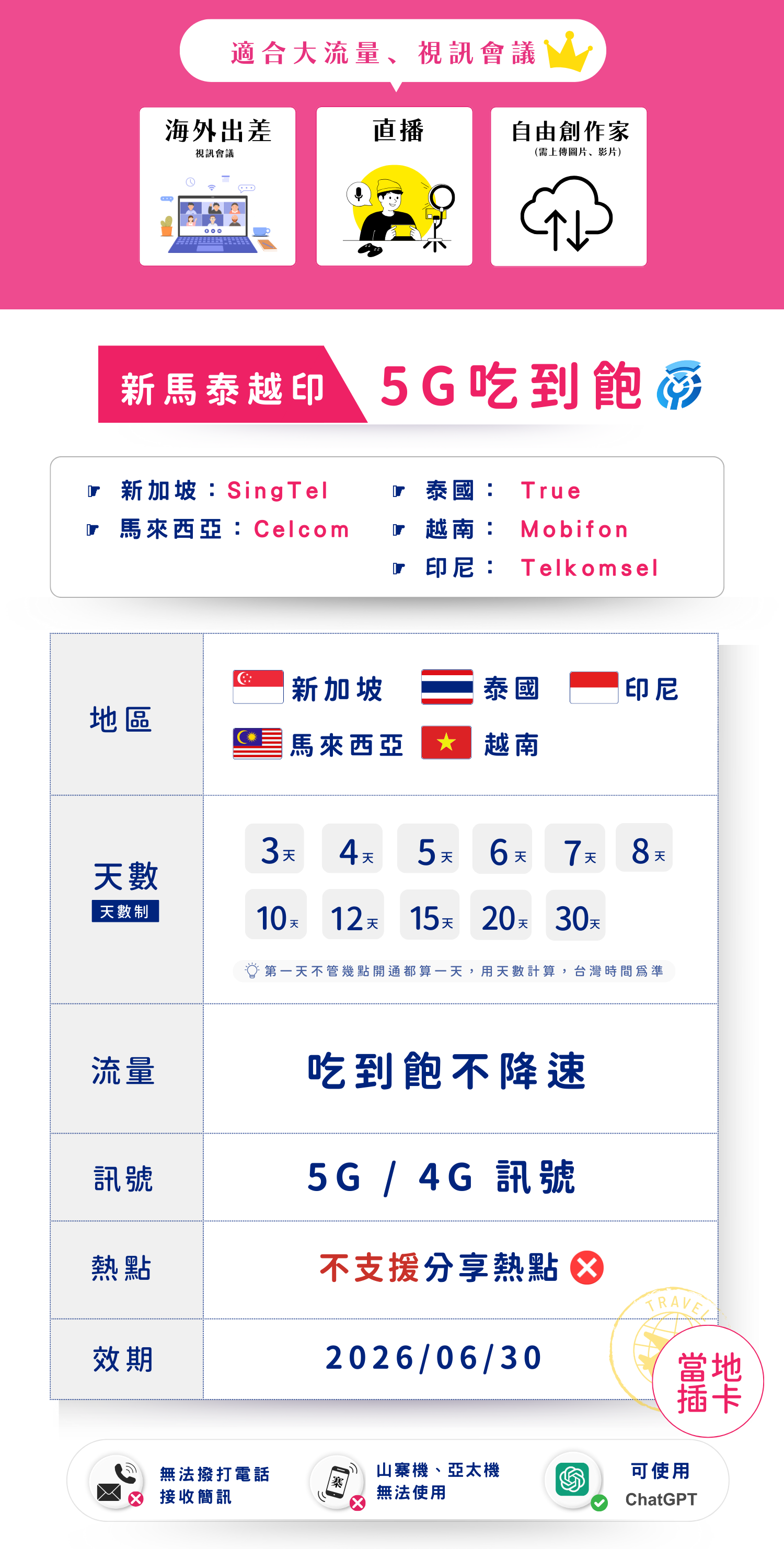 揚奇新馬泰越印多日(5G吃到飽)上網卡