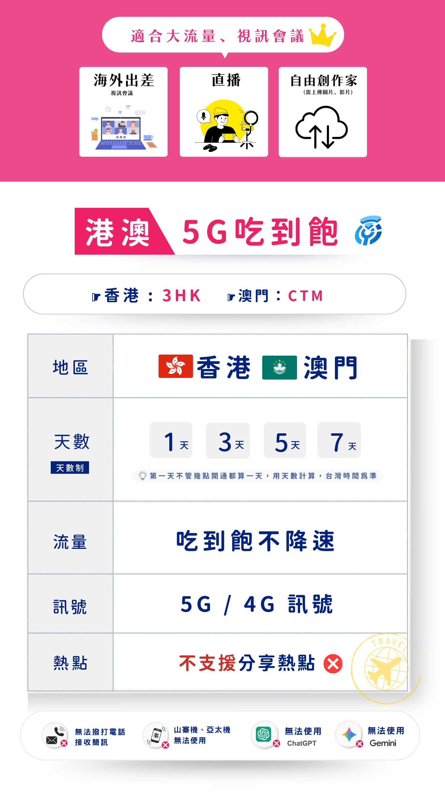 eSIM_揚奇港澳多日(5G吃到飽)上網卡