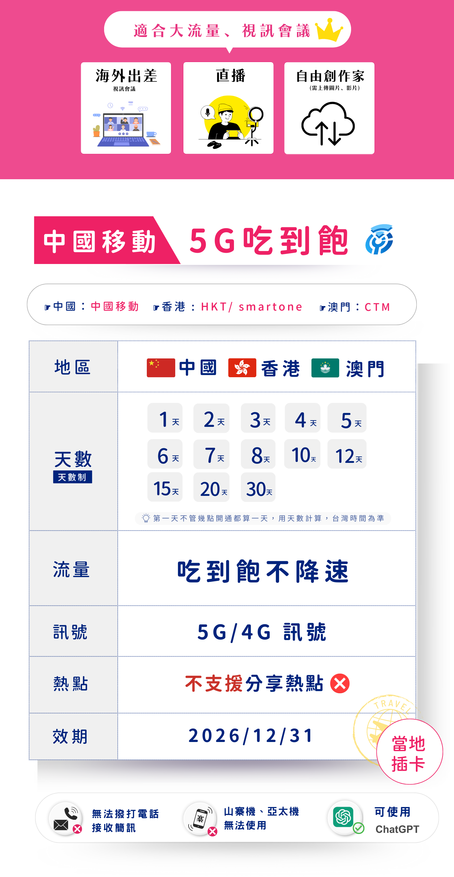 eSIM_揚奇中國移動多日(5G吃到飽)上網卡