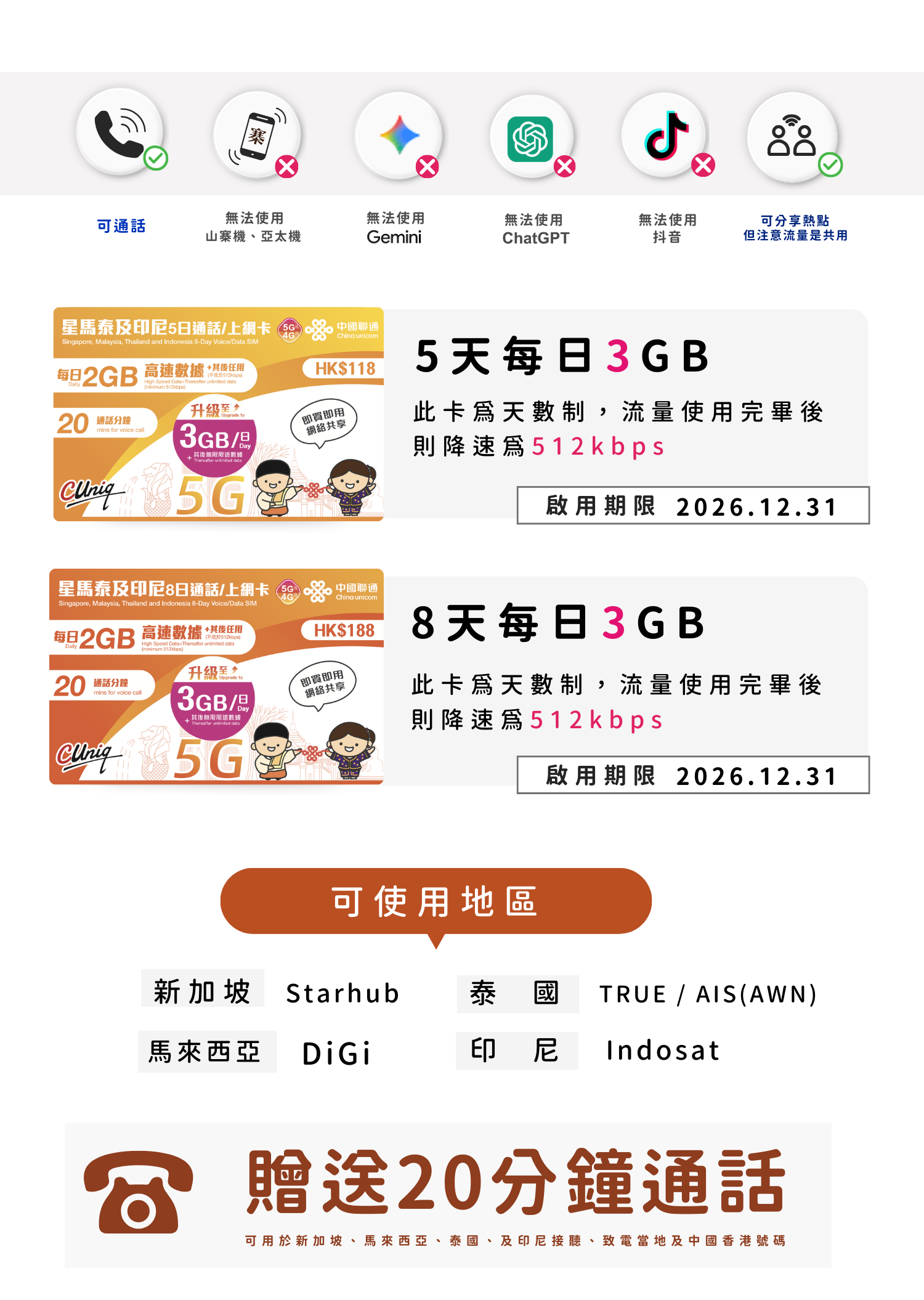 聯通星馬泰及印尼上網卡