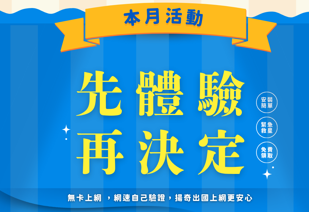 ✦ 免費eSIM:5天總量1GB流量 ( 流量用完斷網 )